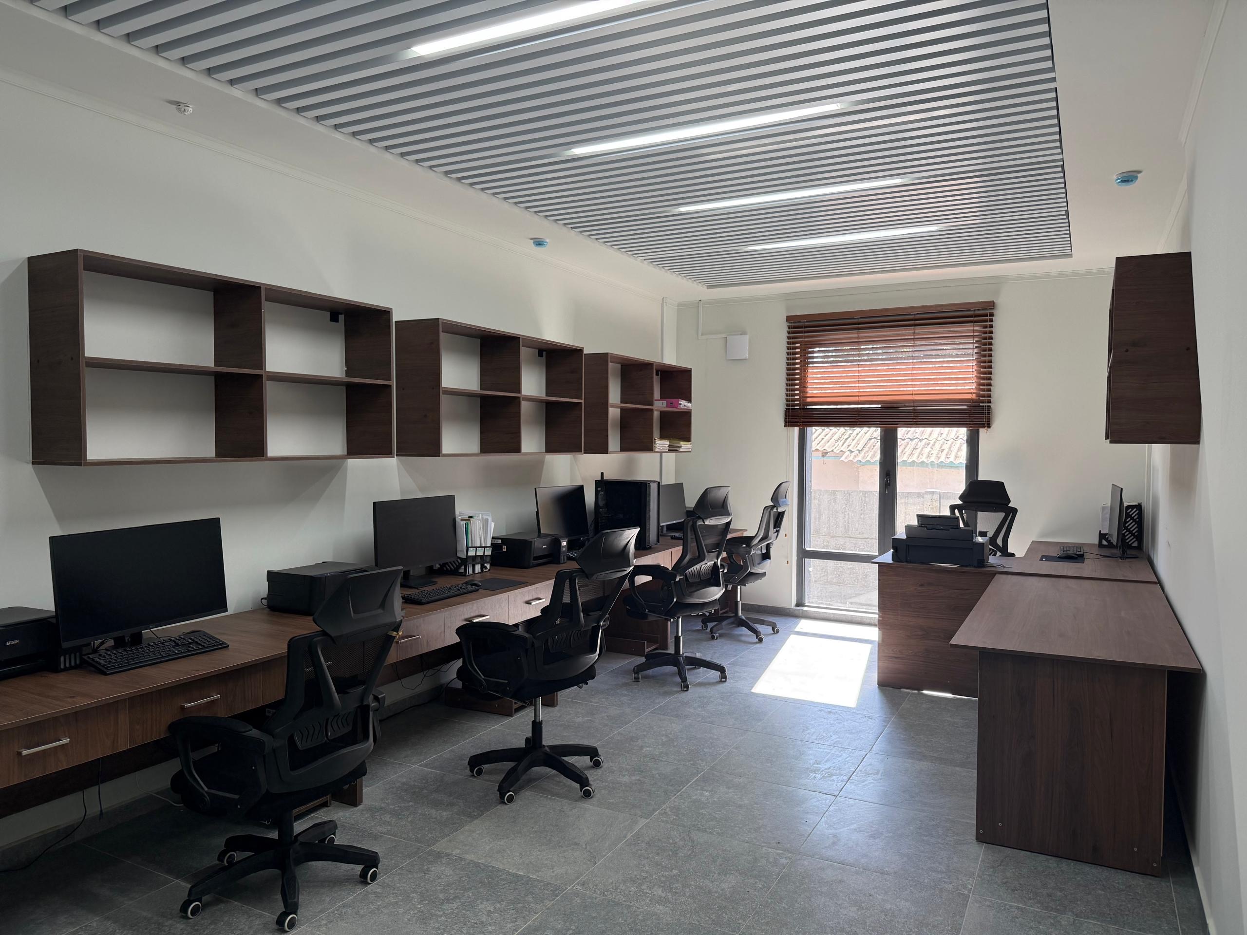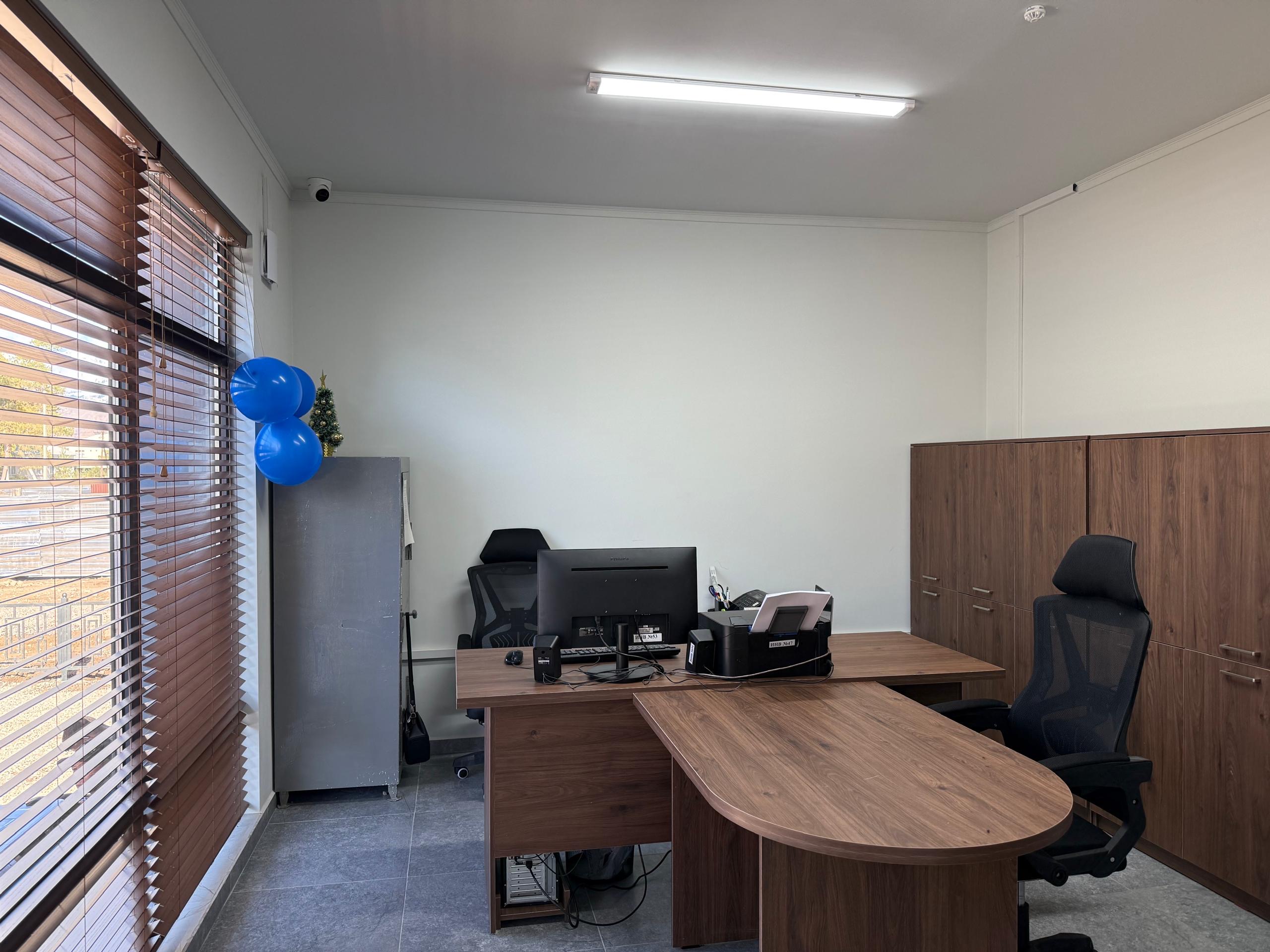 Новое здание представляет собой одноэтажное сооружение общей площадью 288 квадратных метров. В нём расположены семь рабочих кабинетов, залы заседаний и ожидания, а также техническое помещение.